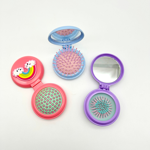 New Arrival phụ nữ Bàn chải tóc Fancy tùy chỉnh PVC Sticker gấp Gương bàn chải tóc số lượng lớn Nhà Máy Giá